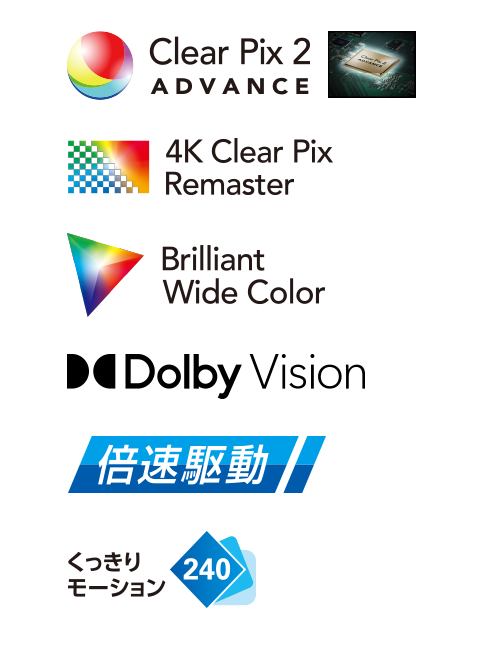 65V/55V/49V倍速駆動でブレのないくっきりとした映像を表現。ハードディスクを搭載し、ネット動画や4K放送録画がすぐに楽しめるハイグレード4Kテレビ。